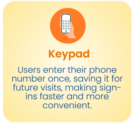 Faster Return Visits – Attendees enter their phone number once, and the system remembers their name for quicker, hassle-free sign-ins in the future.